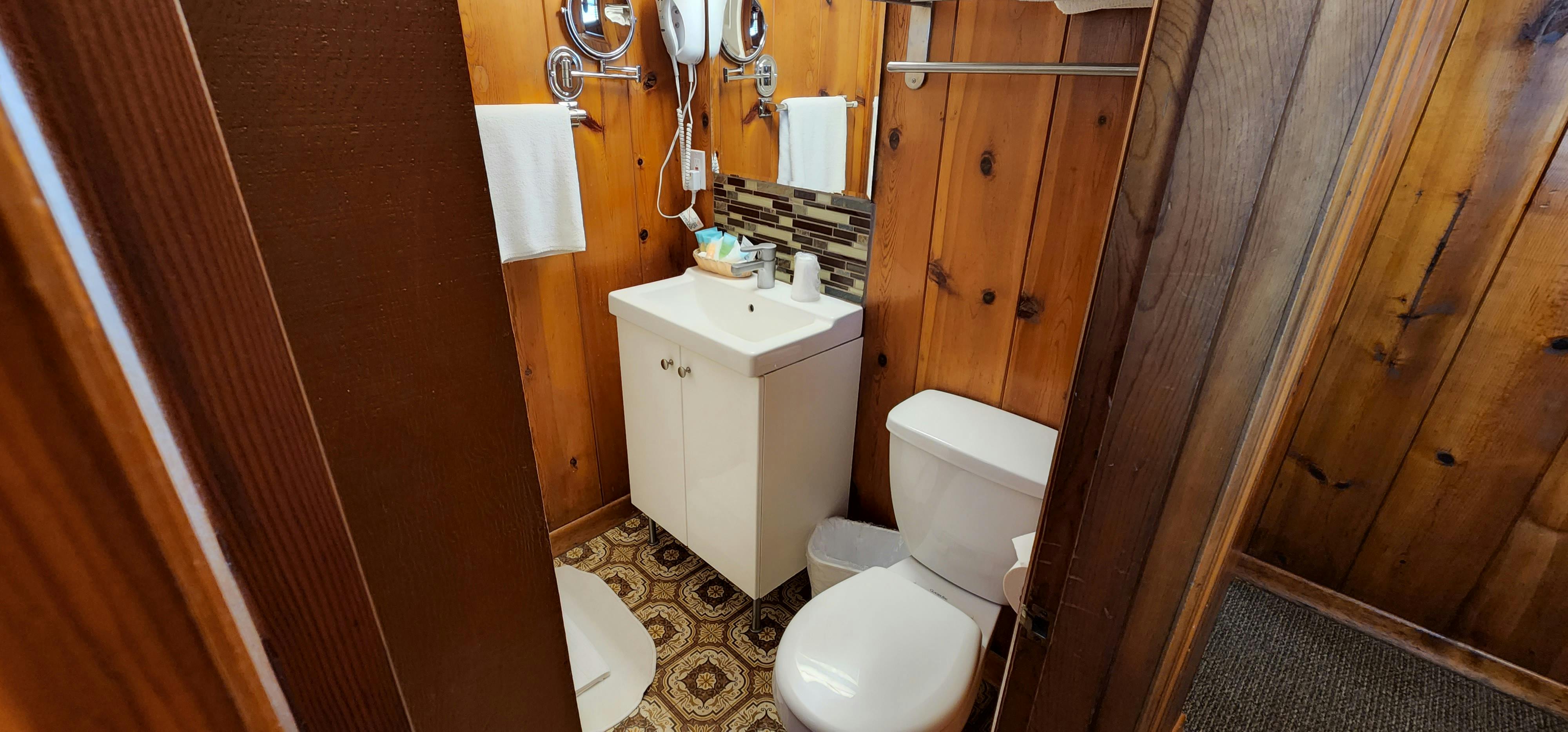 Experience the unique charm of our queen room with a private twin bed nook. Perfect for families or small groups, this room features a comfortable queen-size bed in the main room and a private twin bed nook located next to the bathroom. The room also comes with a private bathroom, a mini-fridge, a microwave, and a flat-screen TV, providing all the amenities you need for a comfortable stay. The room is decorated with a warm and inviting atmosphere that will make you feel right at home. The private twin bed nook is a great space for children to sleep or for a third person to stay. With a homely feel, this room is an ideal choice for those who appreciate a more intimate setting and want to relax in a comfortable and cozy space. Whether you're here for a weekend getaway or an extended stay, our room offers the perfect blend of comfort and convenience.